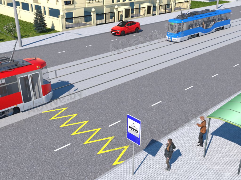 Где разрешено ожидать трамвай при отсутствии посадочной площадки?