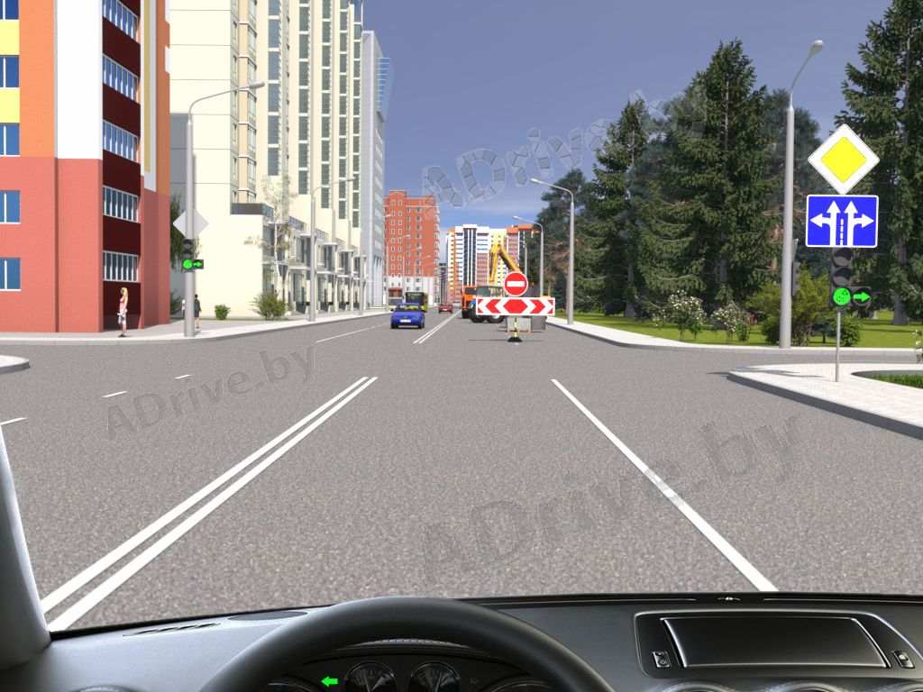 1. Продолжить движение прямо, чтобы не создавать препятствия движению.
