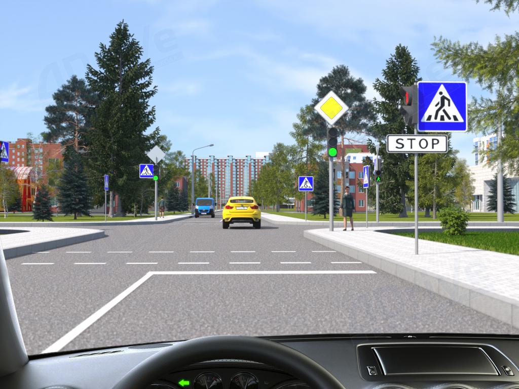 Как Вы должны поступить при движении прямо на перекрёстке в показанной ситуации?