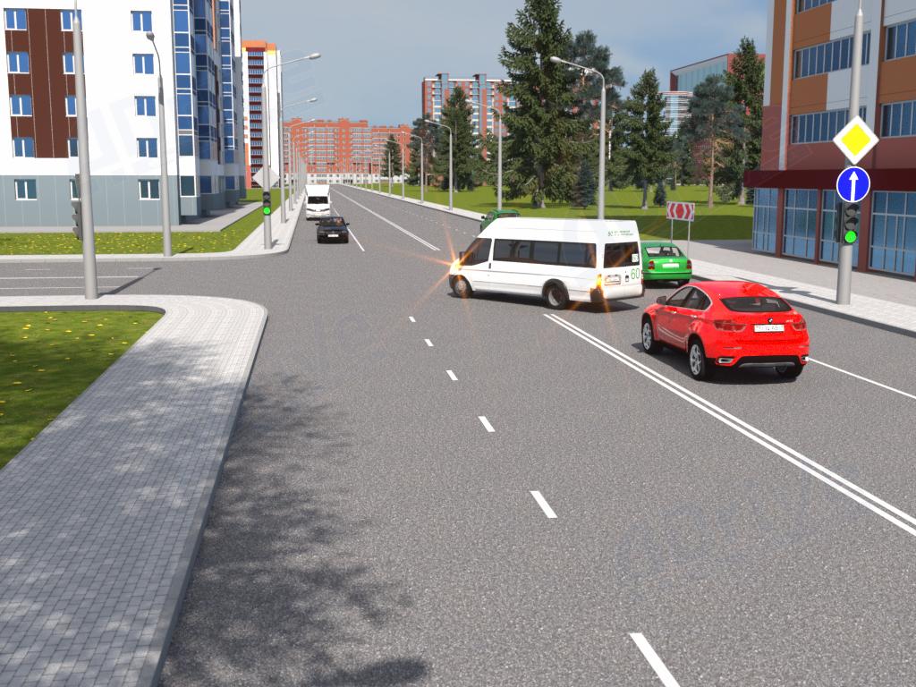 1. Уступить дорогу красному легковому автомобилю.