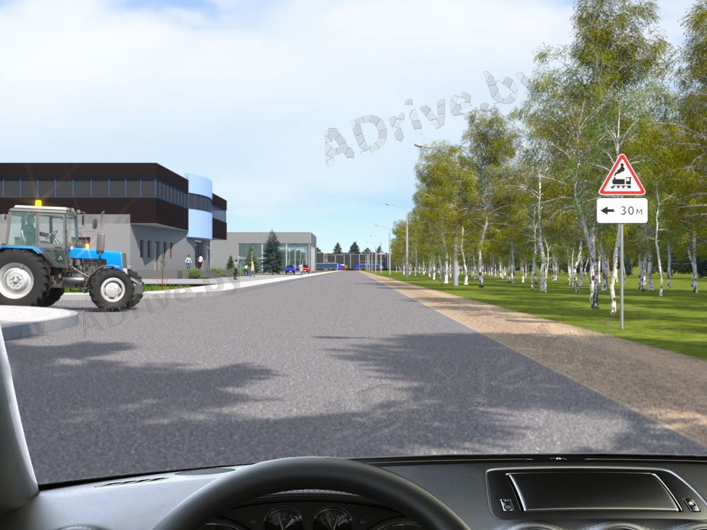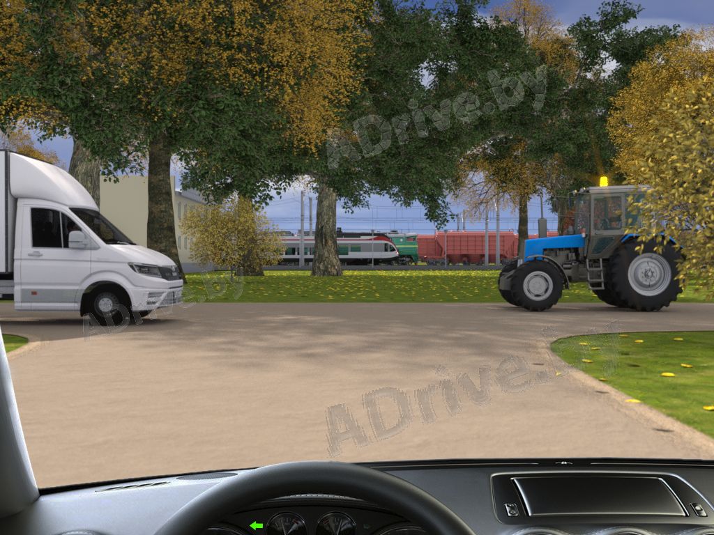 В показанной ситуации Вы вместе с колёсным трактором находитесь на равнозначных дорогах, поэтому имеете преимущество, так как Вы находитесь справа от колёсного трактора.