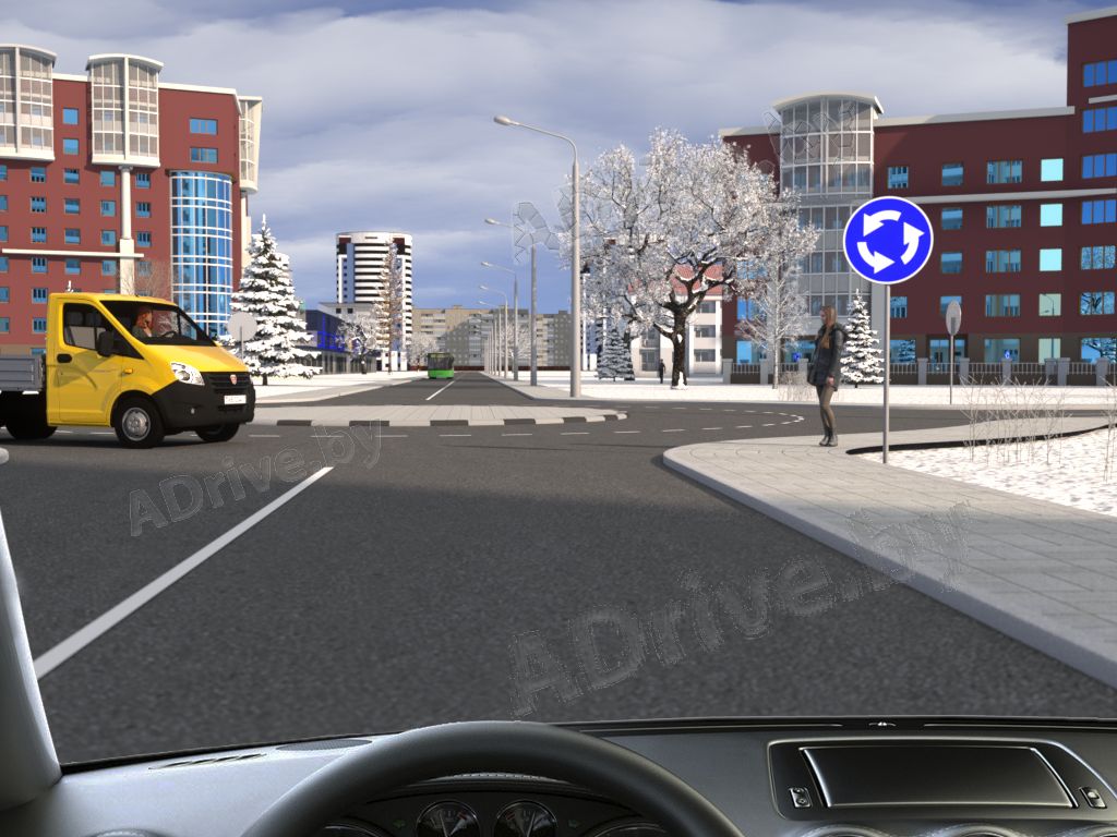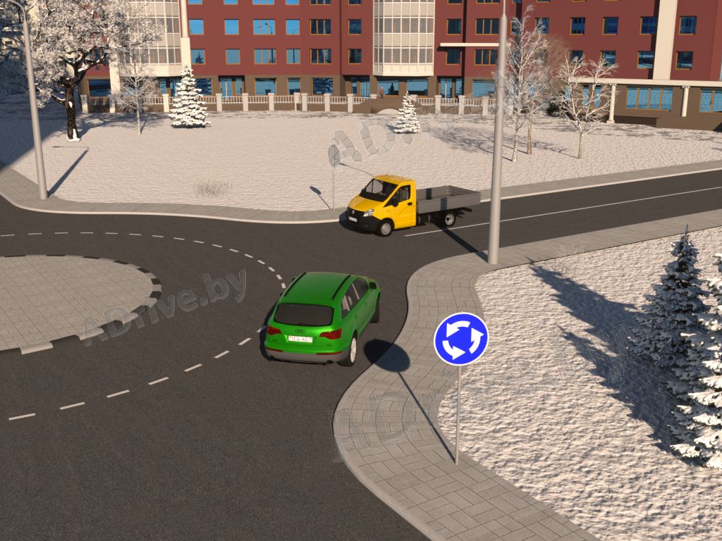 Подъехав к перекрёстку с круговым движением, Вы в показанной ситуации: