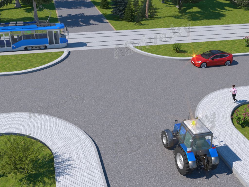 Водитель трамвая имеет преимущество перед другими транспортными средствами (кроме трамваев) независимо от направления его движения