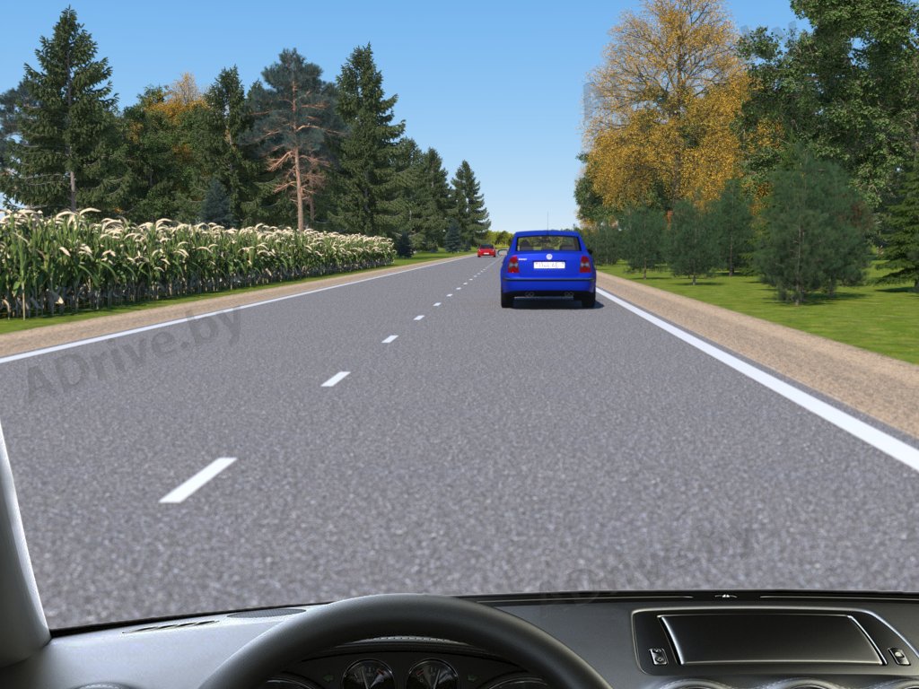 В показанной ситуации полоса занята попутно движущимся автомобилем, завершающим обгон. Выполнение обгона вслед за другим транспортным средством (так называемым «паровозиком») является опасным манёвром и часто приводит к дорожно-транспортным происшествиям.