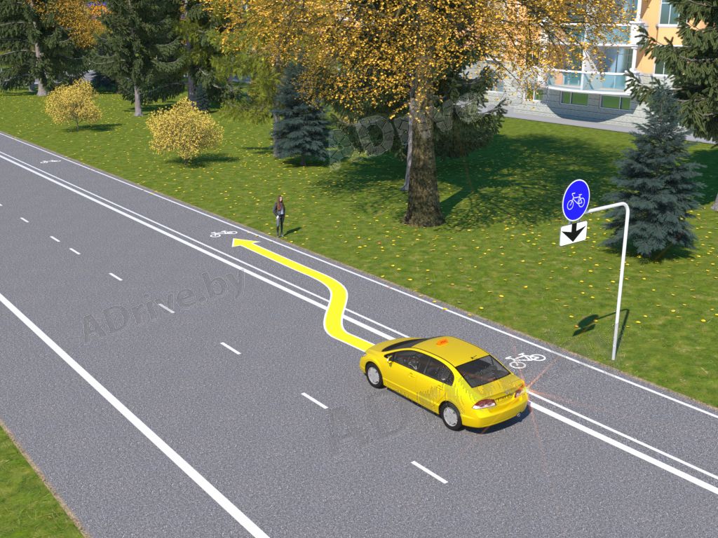 Если справа к проезжей части дороги примыкает велосипедная дорожка, то остановка в таком месте для посадки (высадки) пассажиров запрещена. Выехать на велодорожку запрещено, и высаживать пассажиров на велодорожку тоже запрещено.