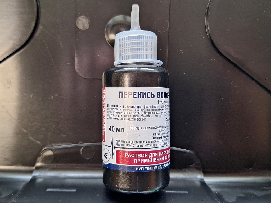 Для дезинфекции раны используется 5-процентный раствор перекиси водорода.