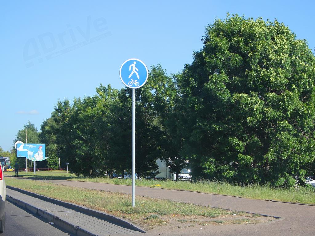- Пешеходная дорожка, движение по которой разрешается пешеходам, а также ввиду отсутствия велосипедной дорожки — и на велосипедах и средствах персональной мобильности, при этом велосипедисты и водители средств персональной мобильности не должны создавать препятствия для движения пешеходов.