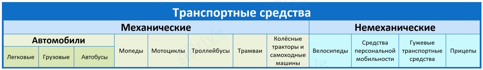 Транспортные средства делятся на механические и немеханические.